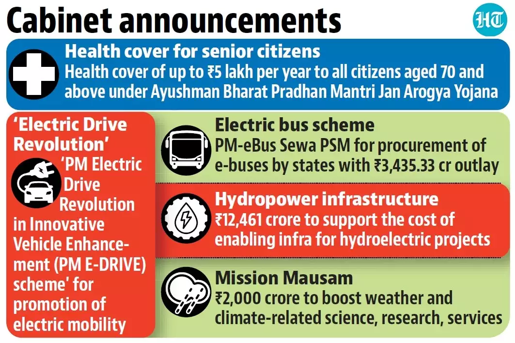 The Union Cabinet has approved Health Coverage for senior citizens of ₹5 lakh for aged 70 years and above under the Ayushman Bharat Pradhan Mantri Jan Arogya Yojana (AB PM-JAY).